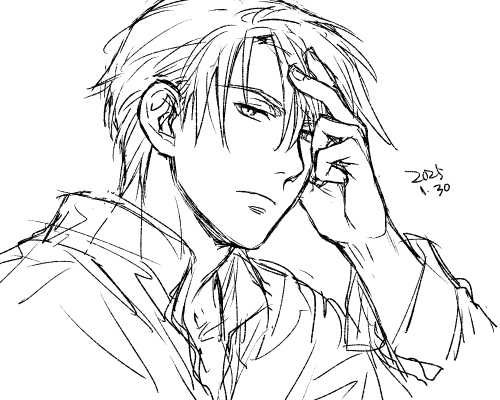 何かこういう顔の角度と指の感じが描きたくなり描いたらくがき。
